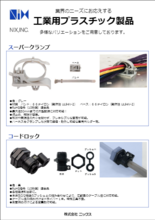 カタログを選択 工業用プラスチック製品(スーパークランプ/コードロック) ファイル形式:pdfファイルサイズ:0.72 MB ■スーパークランプ(JDU-) 最大径50mm までの 大型配線に対応可能! 仮止め、解除が 容易。 ビス止め・両面テープ・ヤジリの3タイプ。 ■コードロック(NC-1,NC-2) 2 種類のブッシュ との組み合わせに より、 広範囲のケーブル径に対応可能。 特殊工具不要。 そのほかにも配線クランプ・ケーブルグランドを多数取り揃えております。 お気…