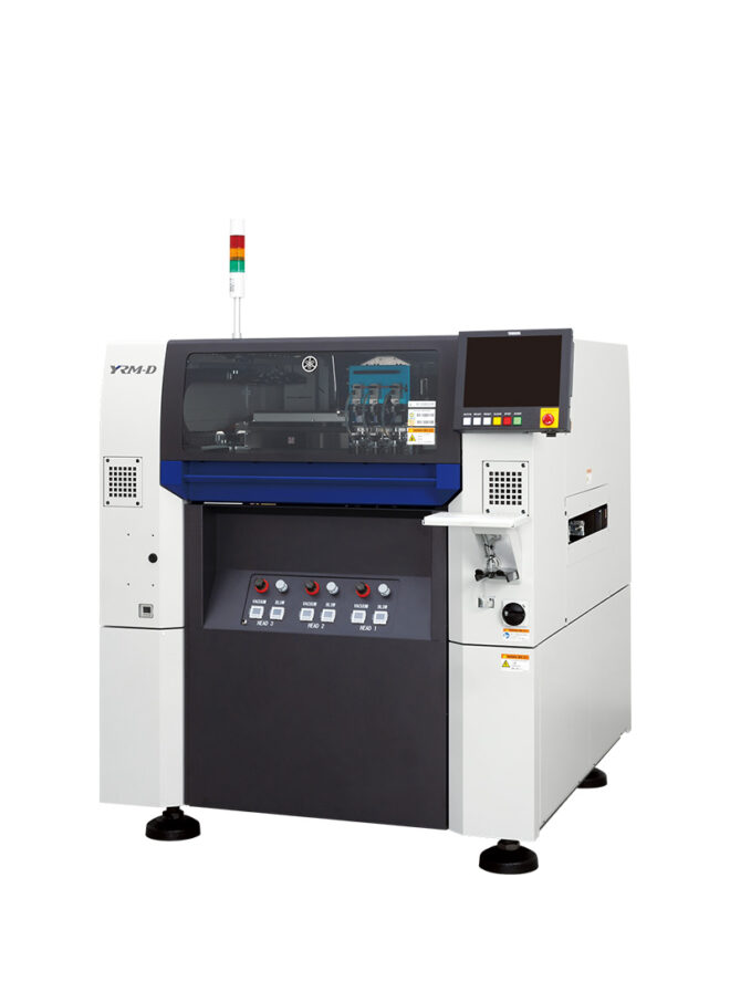 【YRM-D】は、高密度・高精度実装に対応する高速ディスペンサー。速度・精度・安定性を高水準で達成し、高い生産性を実現。搬送パレットを用いた複数枚での生産基板や、伸縮・歪みが生じやすい大型基板、紙フェノール基板には、複数のマークを認識し、局所的な位置補正を行うことで高精度な塗布が可能。ニーズに応える豊富な機能で多様な生産現場にフレキシブルに対応し、定型作業の自動化・サポート機能で作業負荷とヒューマンエラーを削減する。